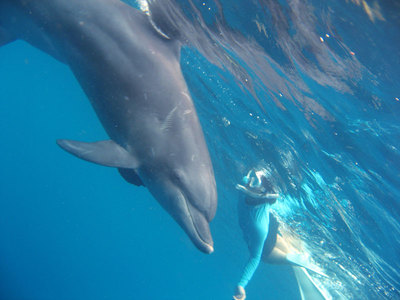 もう超興奮!!しかも、そういうイルカたちが1集団だけじゃなくて結構たくさんいて本当にビックリした。こんなに寄ってきてくれるなんて、私のドルフィンスイム歴の中でもこのスイムはベスト5には入るんじゃないだろうかって位、ものすご〜く充実した最高に楽しいスイムとなった。